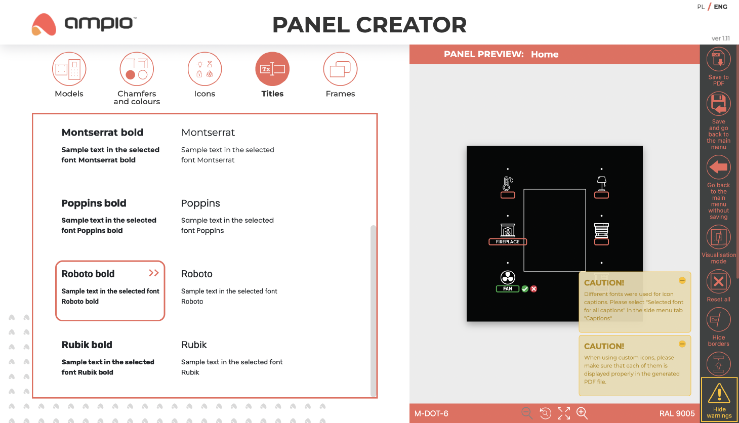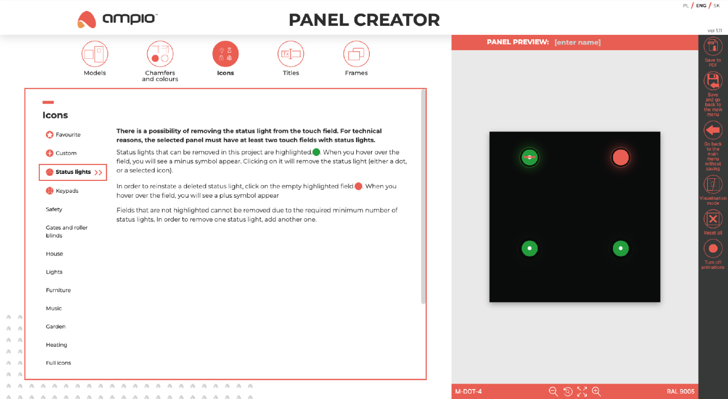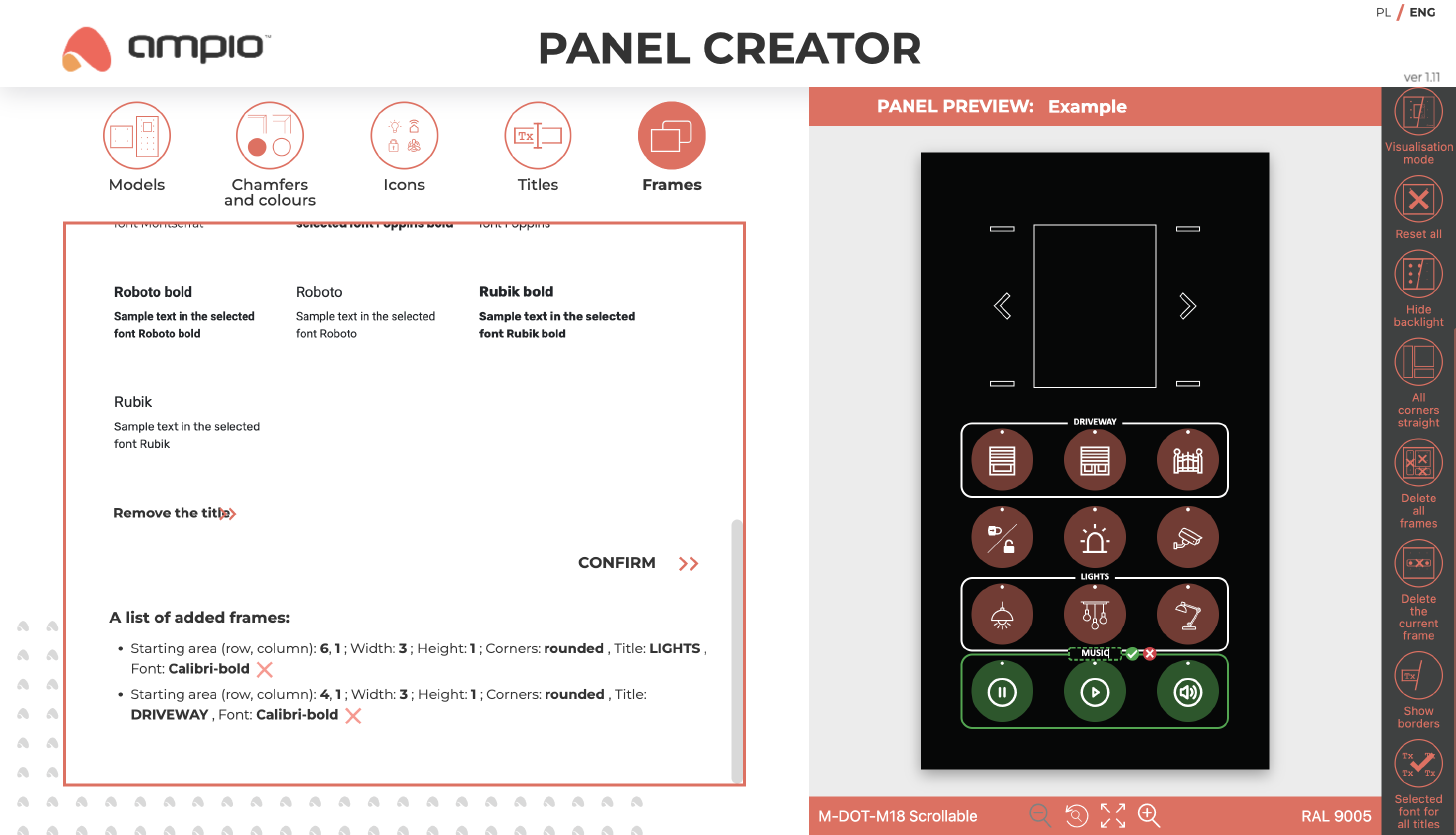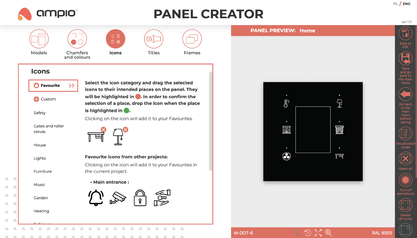 Panel Creator is an application that allows you to create personalised Ampio glass touch panels used for smart home control.