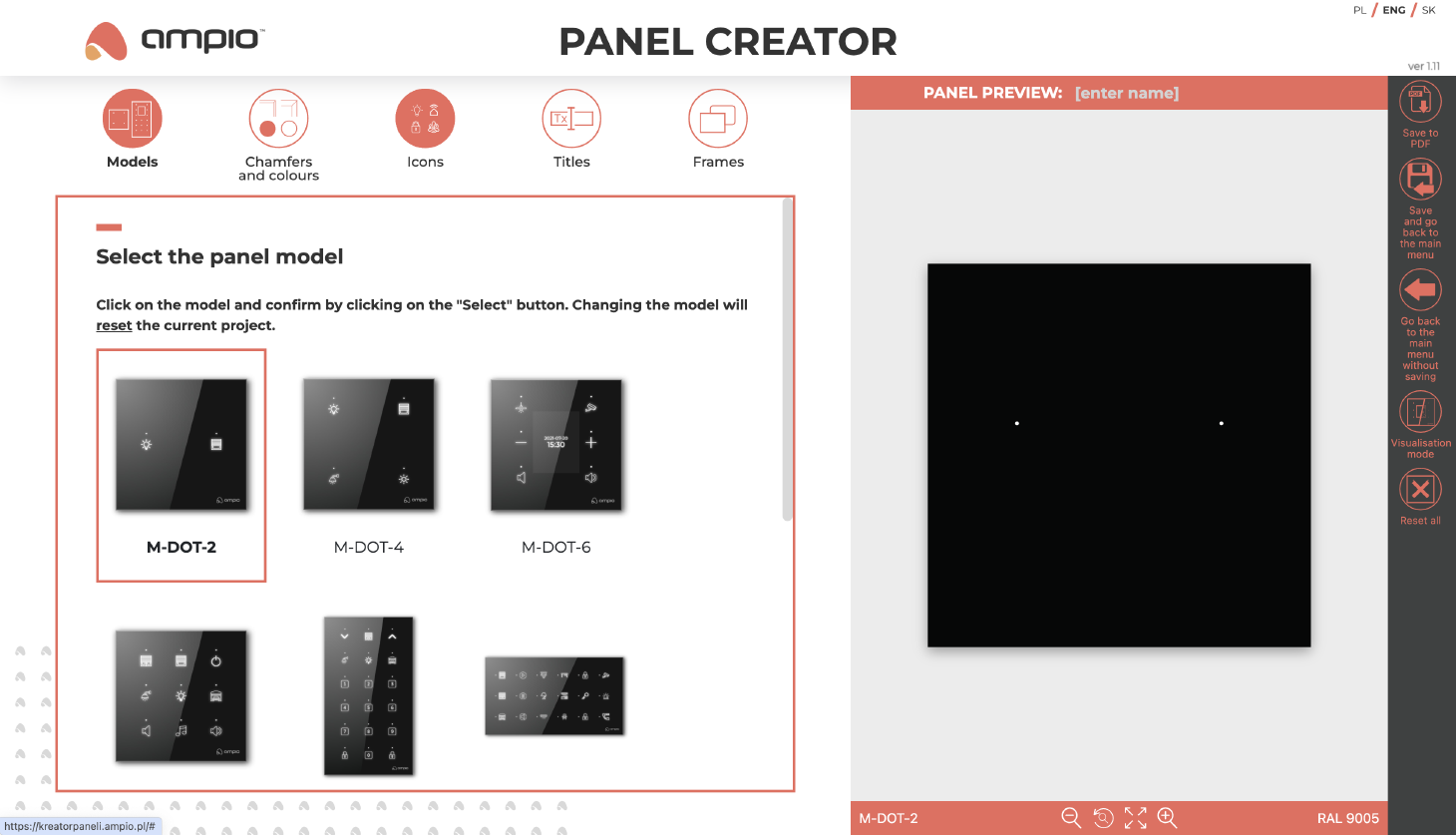 In the Models tab, all personalised panels from the Ampio range are available. Each model has a short description and a link to the Ampio Knowledge Base where you can find detailed information about the model in question.