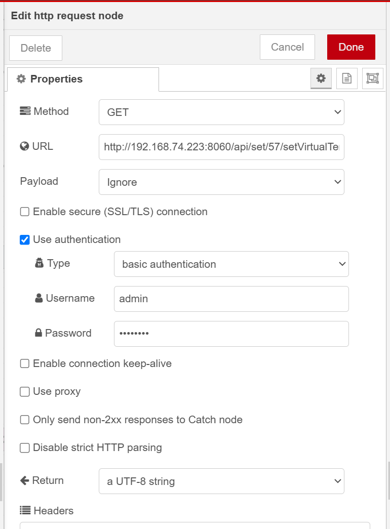 Adding a virtual device makes it possible, for example, to integrate with external temperature sensors using Node-RED.