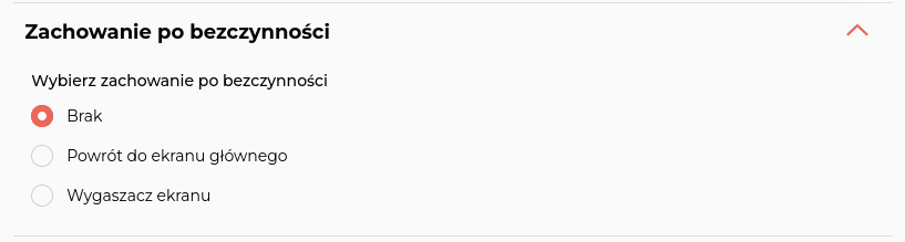 Opcja „Powrót do ekranu głównego” pozwala ustawić czas, po którym – w przypadku braku interakcji – panel automatycznie przełączy się na pierwszy ekran.