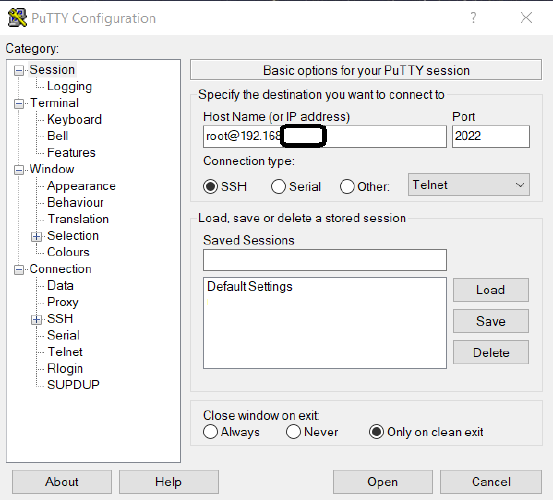 After the change, save and close the configuration file. In putty this is done via Ctrl+x, then y and Enter.