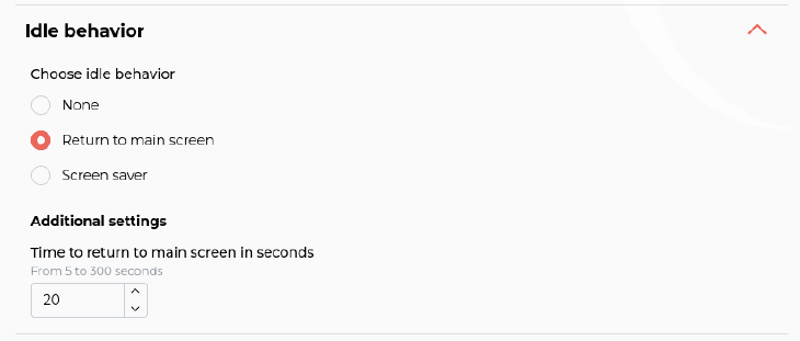 The inactivity time can be set between 5–300 seconds (default 20 seconds).