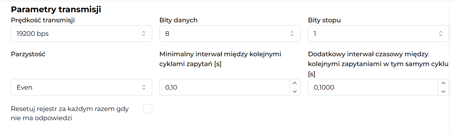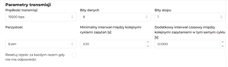 W Parametrach modułu ustawiamy prędkość, bity stopu i parzystość zgodnie z domyślnymi ustawieniami producenta (jeżeli nie zostały zmienione przez użytkownika).