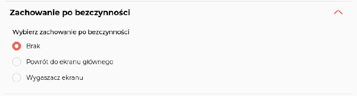 Moduł M-DOT-T6 umożliwia określenie zachowania po upływie zadanego czasu bezczynności, co pozwala dostosować jego działanie do preferencji użytkownika.