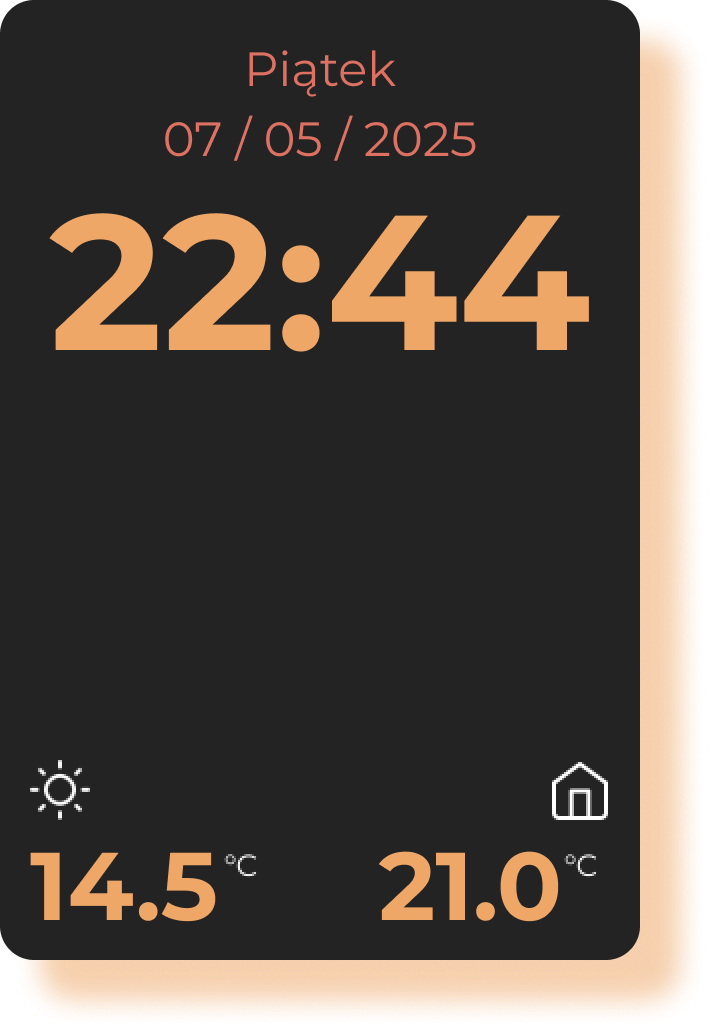 Wygaszacz ekranu może również prezentować dodatkowe parametry w formie podobnej do widgetów wyświetlacza, takich jak temperatura, jakość powietrza czy zużycie energii.